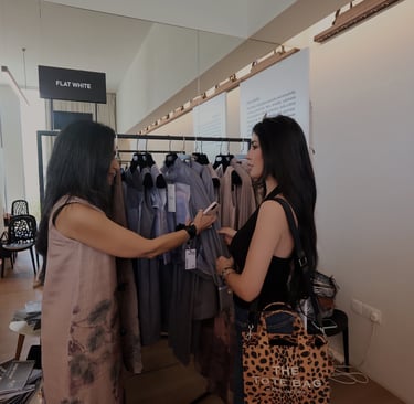 منذ لحظة دخولي موقع المعرض، شعرت بالحماسة في وجوه القائمين على الحدث، وكذلك في أعين الضيوف الشغوفين مثلي بعالم الموضة، وكان أكثر ما لفتني هو المصممون الذين وقفوا إلى جانب تصاميمهم بكل فخر، يروون لها قصصها ويشاركون تفاصيل كل قطعة.